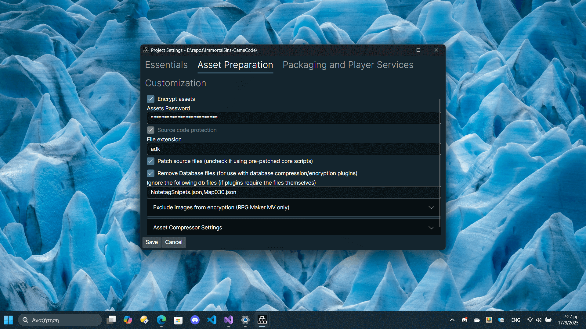 But wait, there’s more! It doesn’t just protect your game. It’s a factory that creates the perfect build for you. Want to make your game smaller (and load faster)? The integrated asset compression will take care of it for you, making it up to 70% smaller. Want to customize how the game works and add a nice icon to it? The Metadata Editor and NW.js manager allow you to customize the behavior of the game and access the latest tech.